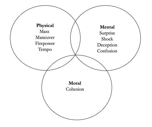 For Boyd, the “Spheres of Conflict” are a product of his intense analysis and synthesis of battles and strategists throughout history. He divides conflict into Physical (The Domain of Things and Technology), Mental (The Domain of Thinking and Ideas), and Moral (The Domain of People, or more accurately, what makes humans fight). “People, Ideas, and Things—In that Order!” is one of his most famous admonishments. This is an idea first popularized by JFC Fuller in “The Foundations of the Science of War.” The Marine Corps officer B.A. Friedman takes this framework and aligns what he terms “Tenets” to each sphere in his work, “On Tactics.” Those tenets are interesting to explore in their own right, but beyond the scope of this essay.